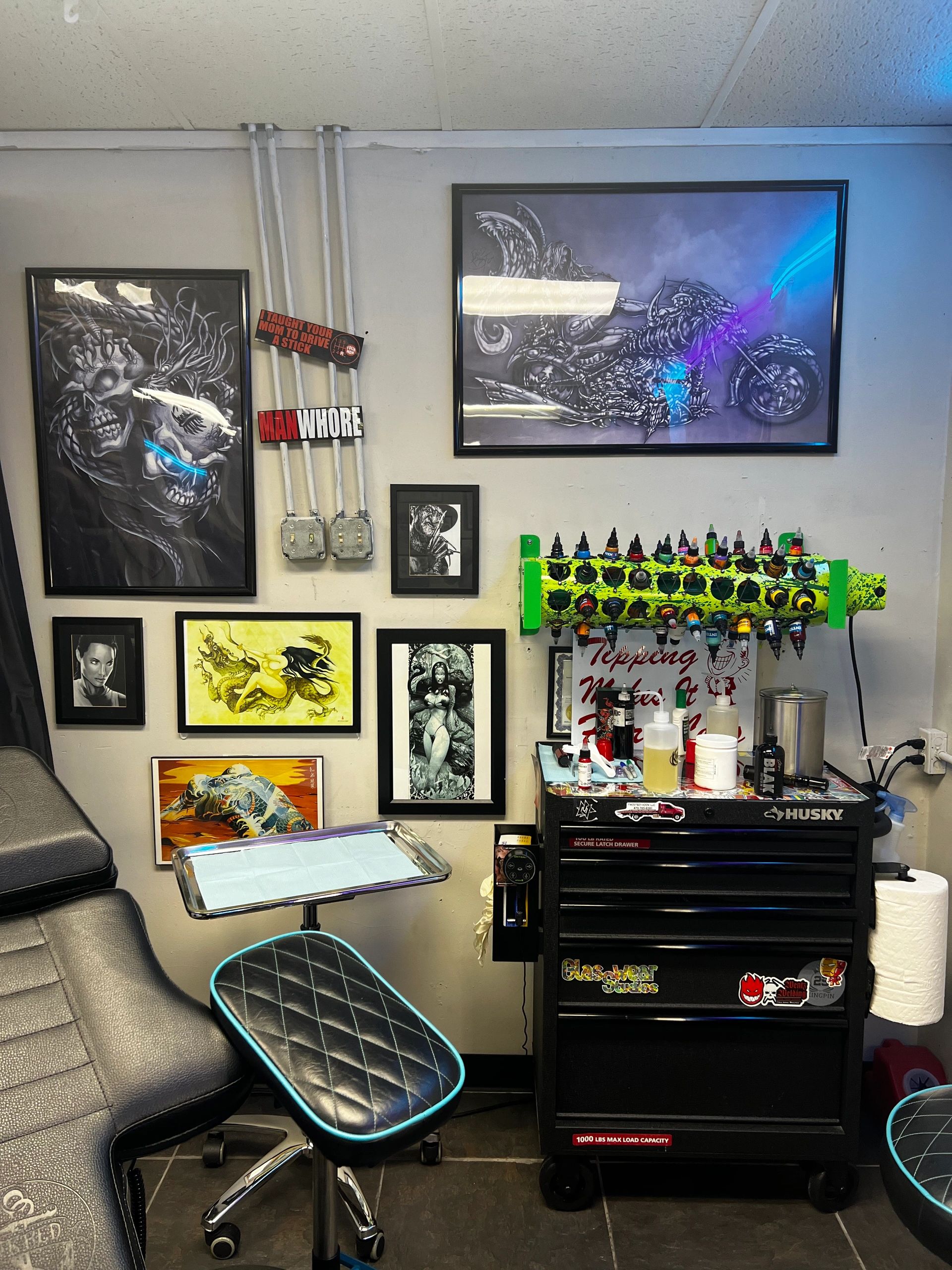 OUR RED ROCKET TEAM CONSISTS OF THREE WELL EXPERIENCED,HIGHLY SKILLED BODY ART PROFESSIONALS!WHEN YOU VISIT OUR SHOP NOT ONLY DO YOU RECEIVE THE BEST EXPERIENCE BUT ALSO THE BEST ARTWORK FOR YOU FROM OUR RAD TEAM! OUR TATTOO ARTISTS ,BIG BEAR, SPUD ,AND OUR PIERCER RICKY HAVE 50 PLUS YEARS OF COMBINED EXPERIENCE .WE LOOK FORWARD TO PROVIDING YOU OF ALL YOUR BODY ART NEEDS!
